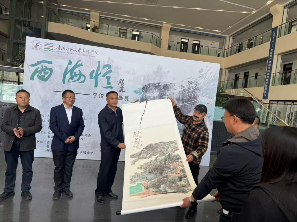 2026年4月10日,“西海忆” 李俊中国画展在青海师范大学美术学院一楼展厅顺利开幕。青海师范大学党委常委、副校长牟昱苍,宣传部部长张瑜,海东市文学艺术界联合会副主席李积霖,科研处副处长苏旭,西宁画院院长黄沛沛,美术学院党委书记张韧等嘉宾出席本次活动。开幕式由美术学院副院长李懿教授主持,美术学院党委副书记卫良致辞,对李俊教授画展的举办表示热烈欢迎。绍兴大学蔡元培艺术与设计学院教授李俊现场分享了自身创作历程,并为美术学院赠送作品,随后宣传部部长张瑜宣布展览正式开幕。
